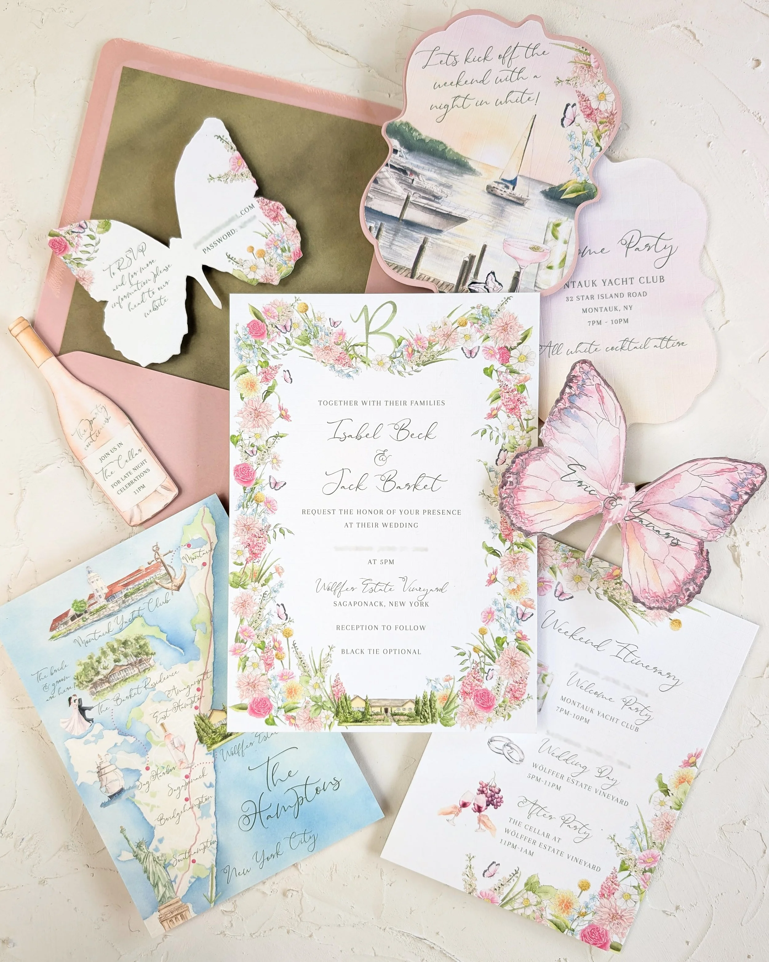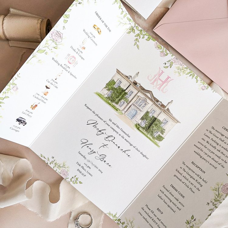 A completely custom, artwork-led invitation suite, designed and illustrated from scratch