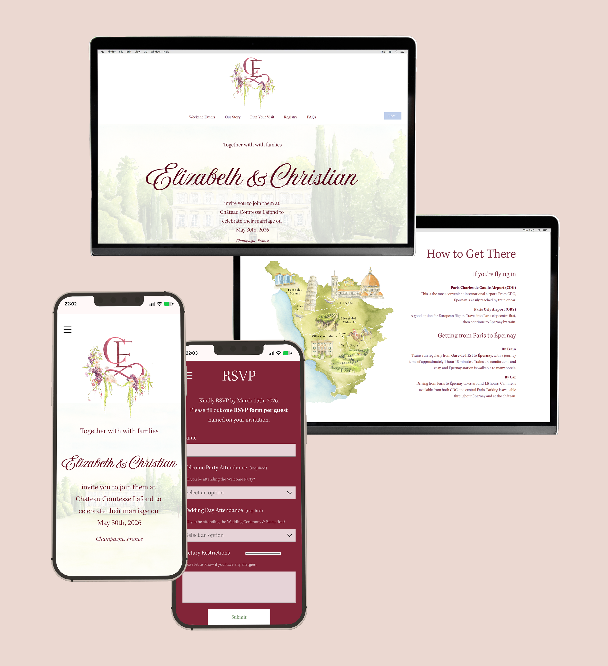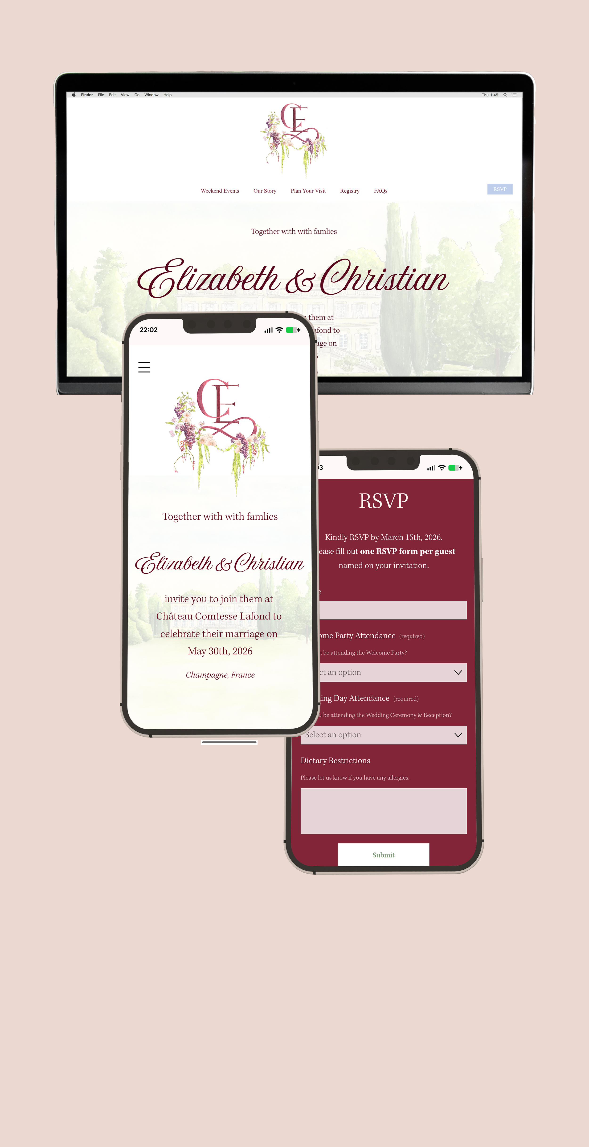 Your wedding website should feel just as thoughtful and personal as your invitations. A beautifully considered space that brings everything together - your theme and artwork, all necessary information, and easy guest management.