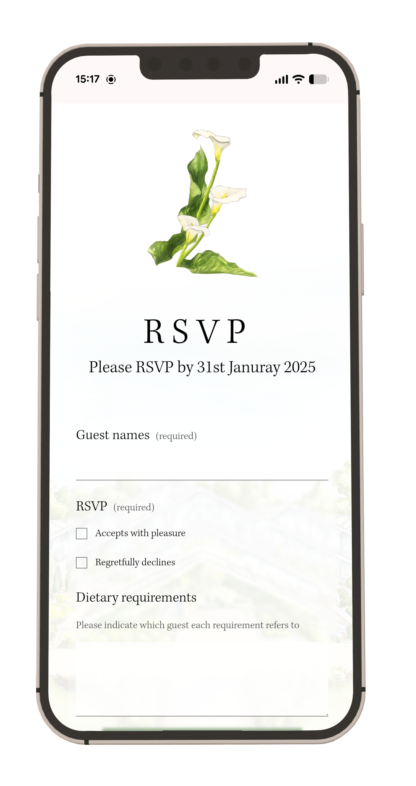Every website is tailored to your wedding, whether you choose a semi-custom or fully bespoke option. Layout, colour palette, typography, wording, sections, and RSVP fields can all be adapted to suit your plans and priorities.